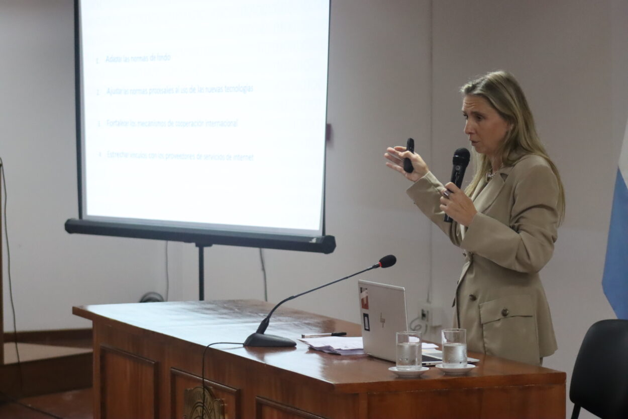La especialista y primera jueza en Cibercrimen de la Argentina, en su alocución, remarcó la imperiosa importancia de las investigaciones de índole penal manifestando inquietudes en cuanto a la problemática, que va más allá de los delitos convencionales y que avanza en la era digital sin distinguir edades ni situaciones sociales.