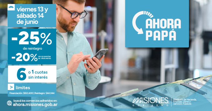Hasta el sábado 14 seguirá disponible esta promoción que en la víspera del Día del Padre ofrecerá la posibilidad de realizar compras en 6 cuotas sin interés utilizando tarjetas de crédito Visa y Mastercard de Banco Macro, y obtener adicionalmente un reintegro del 25% (20% en comercios no misioneros).