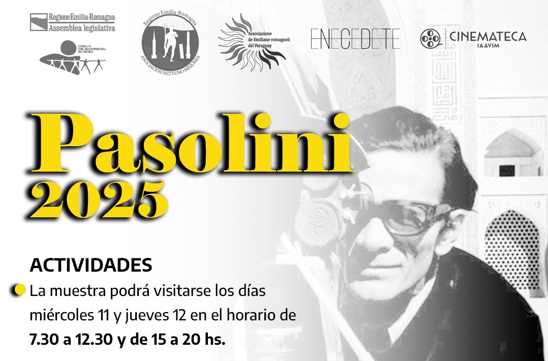 Este martes 10 de junio se inaugura la muestra “Pasolini 2025” en el Museo Yaparí de Posadas, organizada por la Asociación Nettuno, con curaduría de Néstor Saied. Estará disponible -con acceso libre-, hasta el 15 de junio e incluye fotografías inéditas, afiches, lecturas en italiano, conferencia y proyección de cine con “Edipo Rey”.