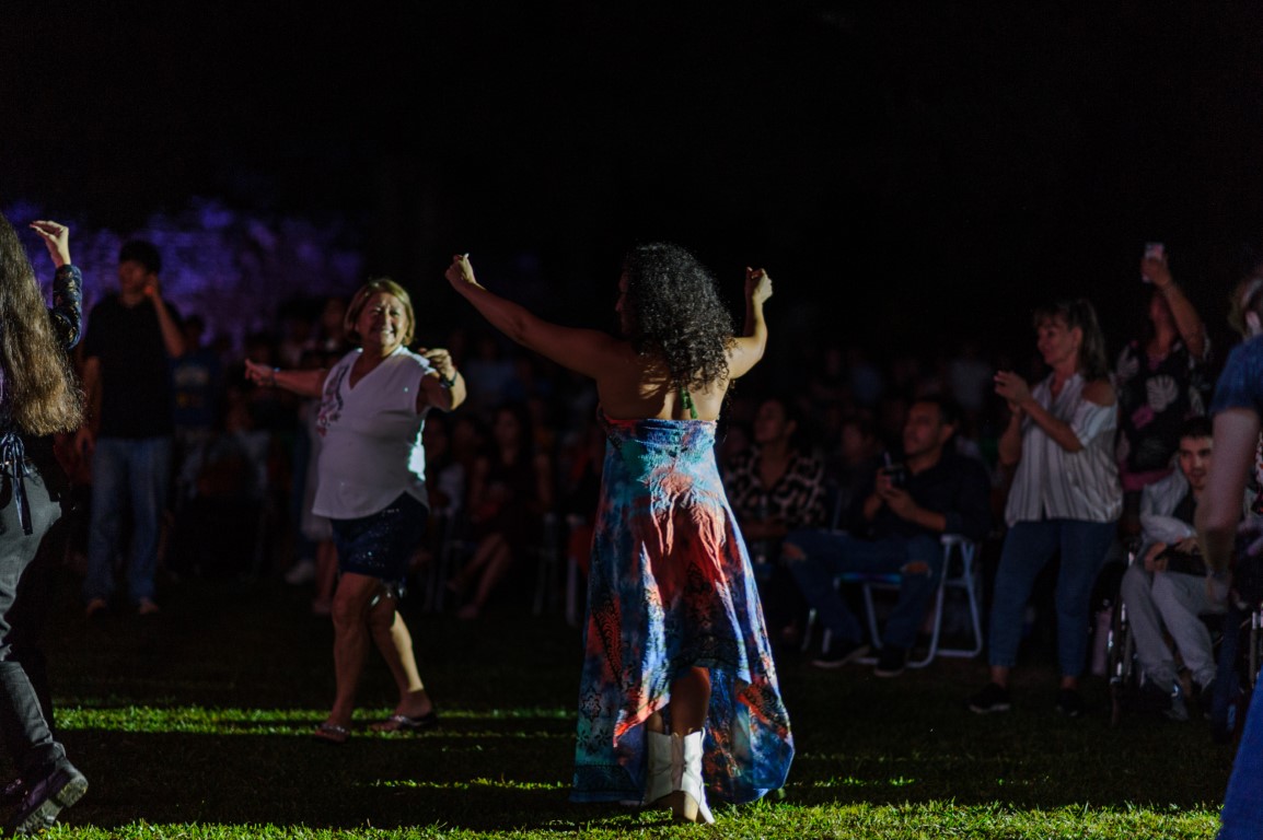 Con una versión de “Chacarera del sufrido”, Carabajal y su banda transformaron el húmedo césped de lo que fuera siglos atrás la plaza jesuítica, en un patio santiagueño de esos donde se baila chacarera día y noche. “Qué hermoso verlos bailar y compartir en este lugar maravilloso con el que han sido bendecidos los misioneros”, expresó la cantante, en una de sus primeras interacciones con el público. Fue antes de interpretar el gato “Voy llegando a mi Santiago”, clásico de Los Manseros Santiagueños.